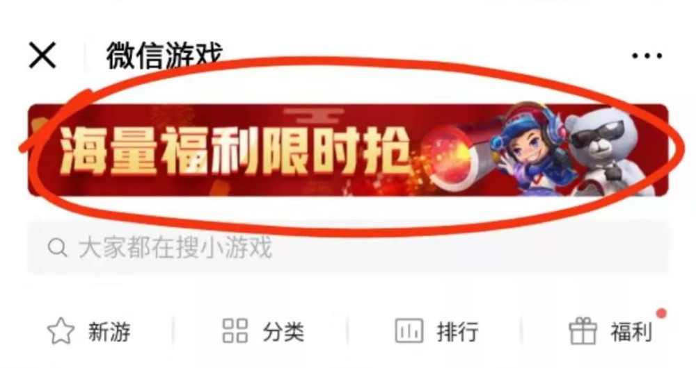假如昨日三点半时,有进入微信游戏的小伙伴就会发现,在置顶的横版海报中,呈现“海量福利限时抢”的字样,而且还有鲁班的电玩小子。