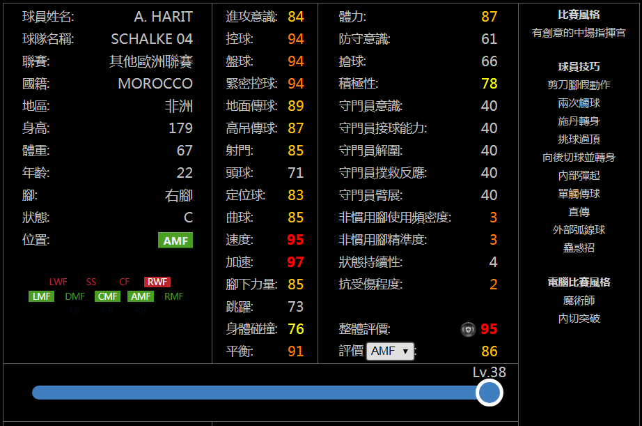 纸面简析:速度一般,但双防和对立不错,和普卡的尖端靠山后腰比起来没有显着优势,不用考虑。