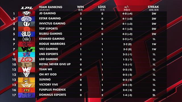 通过6天严重剧烈的竞赛后,JDG以4-0全胜的战绩暂时位居小组第一。iG、TES和eStar以4-1的战绩暂时并排小组第二。BLG以4-2的战绩暂居小组第五,EDG暂居小组第六。RW和VG暂时并排小组第七,LNG暂时位居小组第九。LGD和RNG则暂时并排小组第十,WE、OMG、SN和V5暂时并排小组第十二。而作为S9冠军的FPX战队,却意外的输给了iG和eStar,暂时位列小组第十六!最终一名,则是xiye带领的DMO战队。