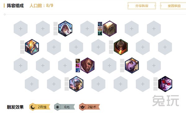 前期能够先用3光2剑去运营,中心配备直接给剑魔配备上。别的要尽早抢一个金铲铲,以便给到剑士去转职,便于凑出6光纠缠。