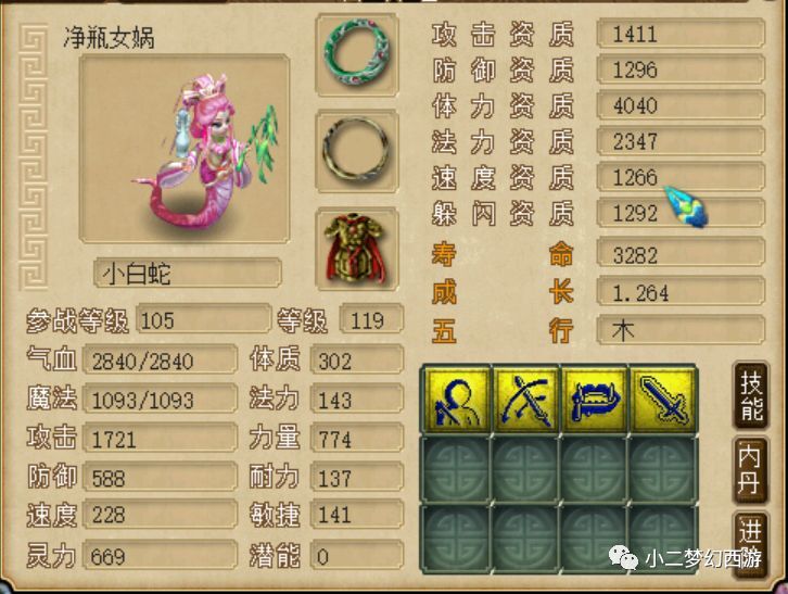 资质方面,初始最高资质,进犯资质1464、防护资质1440、膂力资质4800、法力资质2820、速度资质1560、躲闪资质1560,资质上来看倾向物理,数值上看也是不错的。