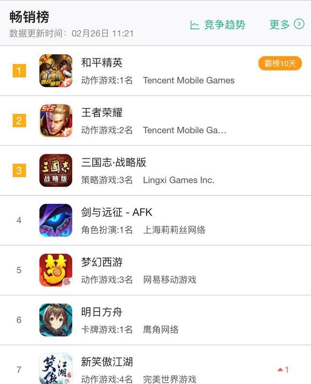 《平和精英》在二月份简直做到了全程强占第一