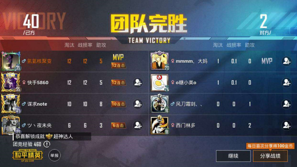 平和精英里边有许多种形式,最经典的是传统吃鸡形式,节奏最快的则是团队竞技形式。在团队竞技形式里边游戏中人物的血量被添加到了120,小伙伴们可以想一下光子为何需要给游戏中人物添加血量。上图所示,一位玩家投稿说“龙百万,这是我在平和精英里边见过的实力悬殊最大的团队竞技竞赛,40比2的人头比,敌人被摁在地上打,哈哈哈”。