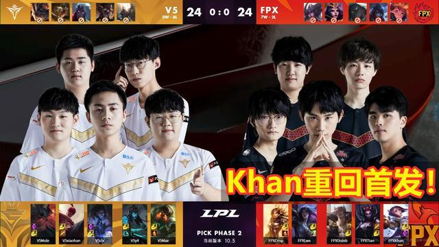 3月30日,LPL春季赛迎来了V5和FPX的对决,FPX上单Khan重回首发!首场竞赛V5为蓝色方,选到的阵型为上单剑魔,打野盲僧,中单塞拉斯,辅佐泰坦和ADC复仇之矛;而赤色方的FPX则是选到了上单剑姬,打野蜘蛛,中单瑟提,辅佐女坦和ADC卡莎。