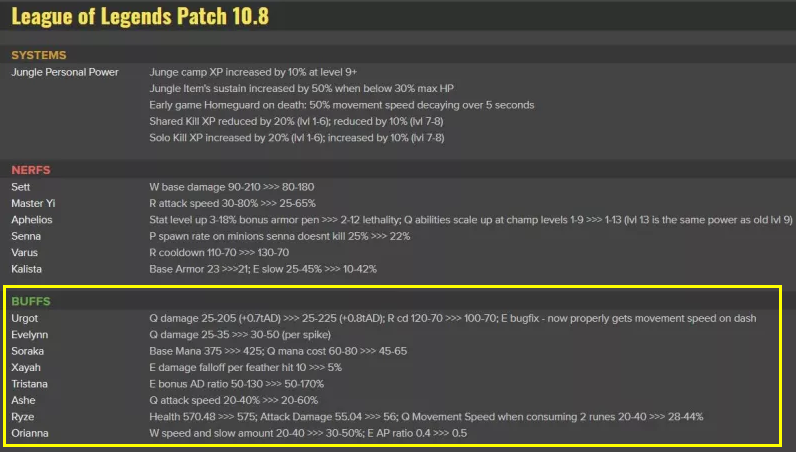 整体来说,这版别除了厄加特的全面加强以外,其他英豪加强起伏并不算大,不过原本不削弱就当是加强了,现在能加强也是一件功德。至于其他英豪的削弱和打野机制的改动,限于篇幅就不剖析了,概况能够看别的一篇的剖析。