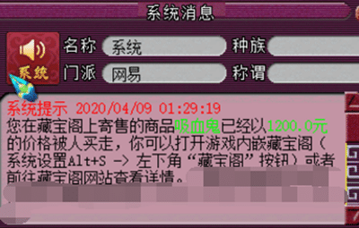 今日刚刚登陆游戏就提示我之前上架藏宝阁的一只吸血鬼现已以1200元的价格被买家买走了,还认为自己看错了,立刻动身去洗了把脸回来,才发现这一切居然是真的,快乐的差点跳起来,要知道那只吸血鬼尽管是9技才能劈,可是是一只野生宝宝,在游戏里喊了好几天都没人要。没想到在藏宝阁上遇到了盲僧。