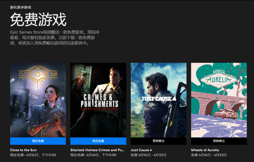眼睛凶猛的小伙伴必定现已发现了,没错EPIC的下周(也便是4月16日)将免费向我们赠送正当防卫4!小伙伴们是否特别等待呢?下周请及时收取哦!