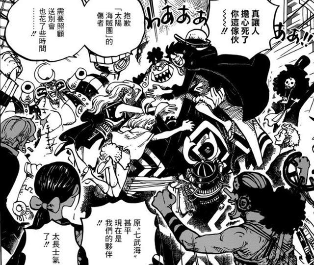 在上一话中,海侠甚平上台,直接随手干掉了对方的加农长炮。草帽团的世人将甚平团团围住,心里的喜悦之情溢于言表。甚平坦言,是由于太阳海贼团的船员有伤者需求照料,所以多花了些时刻。不过能及时赶到,也算是完美结局了!