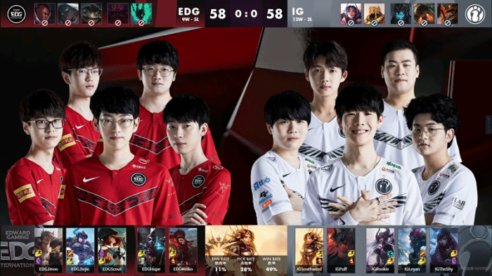 在BP阶段IG选出了厄斐琉斯,巨魔,辛德拉,剑魔,日女。而EDG选出了瑟提,猪妹,女枪,艾克,山公。